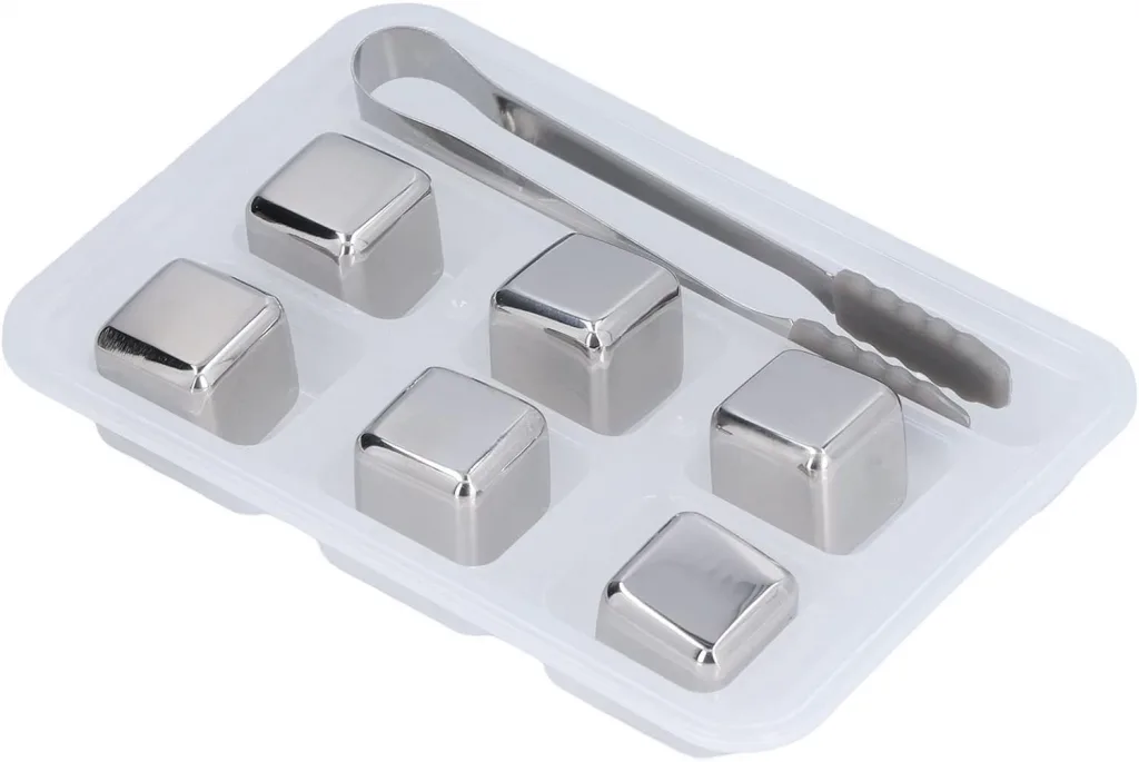 6'lı  Çelik Metal Gold Kaplama Viski Taşı Soğutma Buz Küpü Çelik Buz Küpleri Metal Soğutma Küpleri Hediyelik Çelik Viski Soğutma Taşı Seti Ürün viski için kullanımı daha yaygın olduğu için viski soğutma küpleri olarak geçse de her türlü soğuk içecek için kullanıma uygundur. · Buz küplerinin içerisi saf su ile doludur. Çelikten üretilmiştir. · Küplerin boyutu yaklaşık 2,7 cm x 2,7 cm ölçülerindedir. · Asla kimyasal zararlı vernik, cila vs kullanılmamıştır. · Ham bez pamuklu soğutma kesesi ile gönderilecektir. Kese buzluğun kokusunu taşlara geçmesini engeller. · Kutu içerisinde 6 Metal Soğutma taşı bulunmaktadır. · Kullanmadan önce yıkamanız önerilir. · Küpler buzdolabının buzluk bölümünde kutusunun içerisinden çıkan özel kesesi ile birlikte 3-4 saat kaldıktan sonra kullanmaya başlayabilirsiniz. Bir kadeh içeceğe 2 bu soğuk Buz küpünden bırakmanız yeterli olacaktır · Kullandıktan sonra ılık suyla yıkayıp tekrar kullanabilirsiniz. Bulaşık makinasında da yıkabilir. · Ürünlerimiz çok güzel bir hediyelik ürün olarak düşünülebilir. Not: Görseldeki kraf, şişe, bardak , maşa vb. aksesuarlar ürüne dahil olmayıp sadece görsel amaçlıdır. Viski taşı, viski ve diğer soğuk içeceklerinizin ısısını muhafaza eder. Viski taşı 21,6 derece bulunan yani oda sıcaklığındaki bir viskiyi yaklaşık 4 derece kadar soğutabilir. Viski taşı, viskiyi sulandırmadan soğutabilmesine ek olarak, soğutma derecesini belli bir seviyede tuttuğu için viskinin karakterini de bozmamış olur. Viski taşı, viskisini oda sıcaklığının biraz altında içmek isteyen ve bunu yaparken de viskisini sulandırmak istemeyen viski tutkunları için doğru bir tercih olacaktır. Sadece viski için değil, diğer tüm soğuk içeceklerde rahatlıkla kullanılabilir.