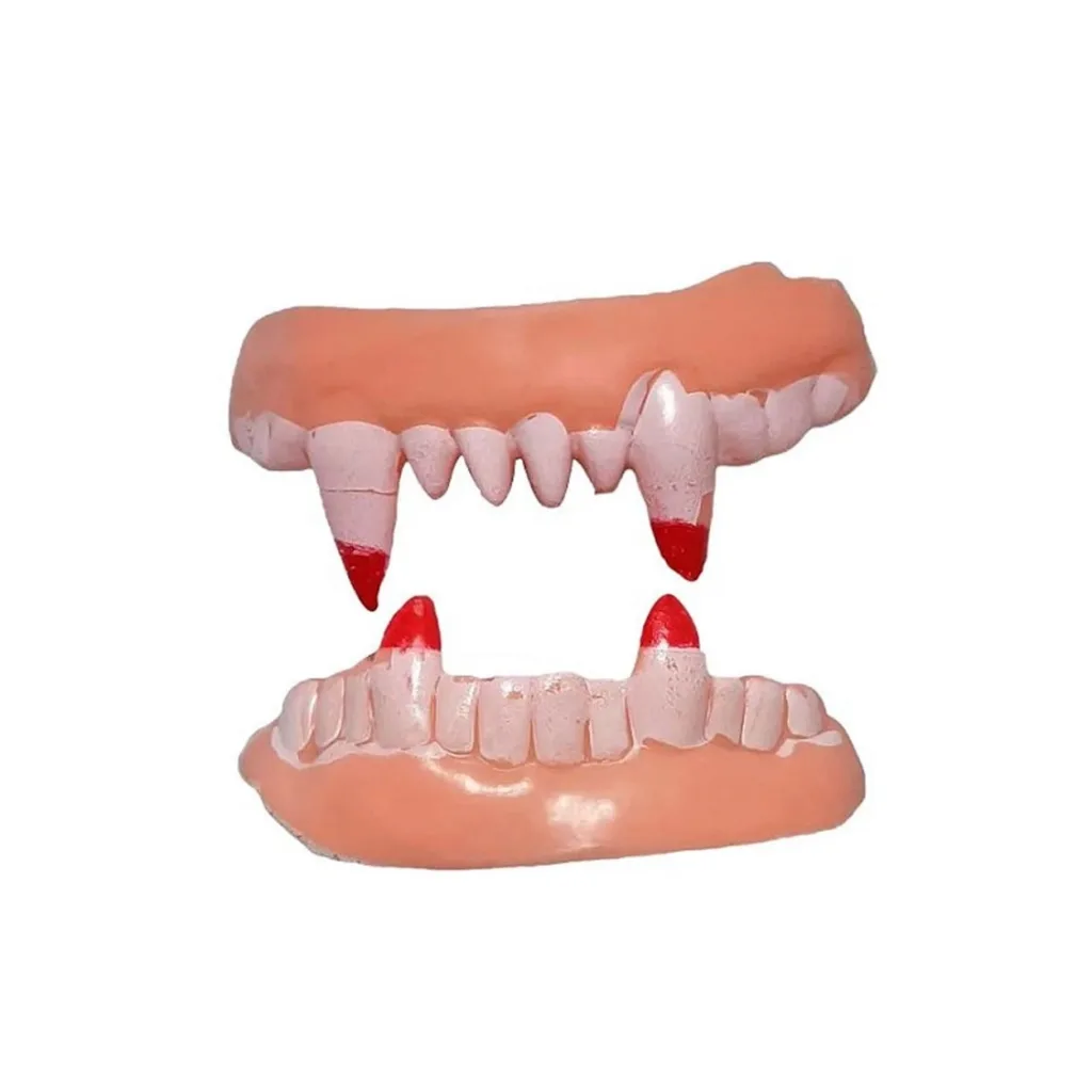 Gerçekçi Tasarım: Dişlerin ucunda kırmızı detaylarla, korkutucu bir vampir görünümü sağlar.