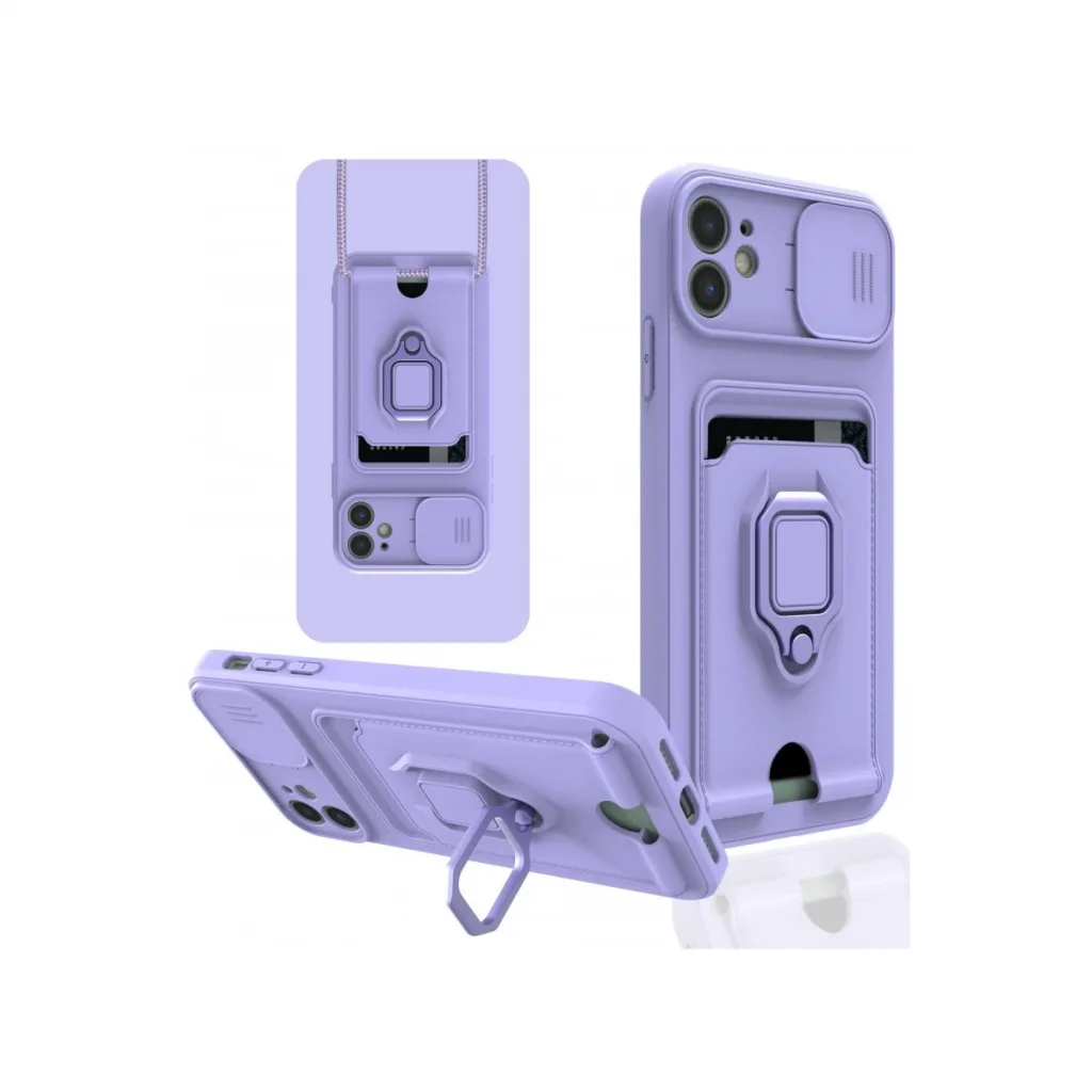İphone 11 Kılıf Zuma Kartvizitli Yüzüklü Silikon - Lila