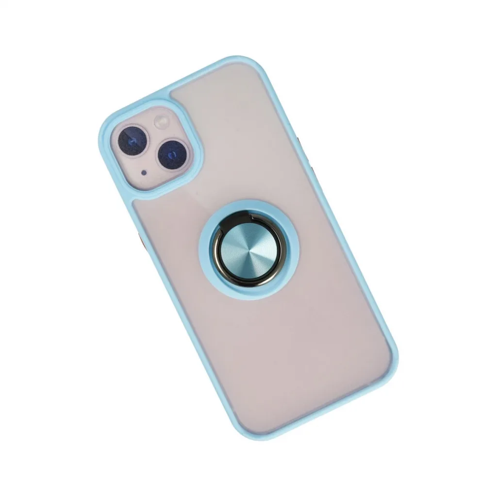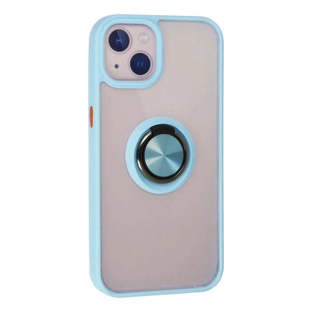 İphone 13 Kılıf Montreal Yüzüklü Silikon Kapak - Buz Mavi