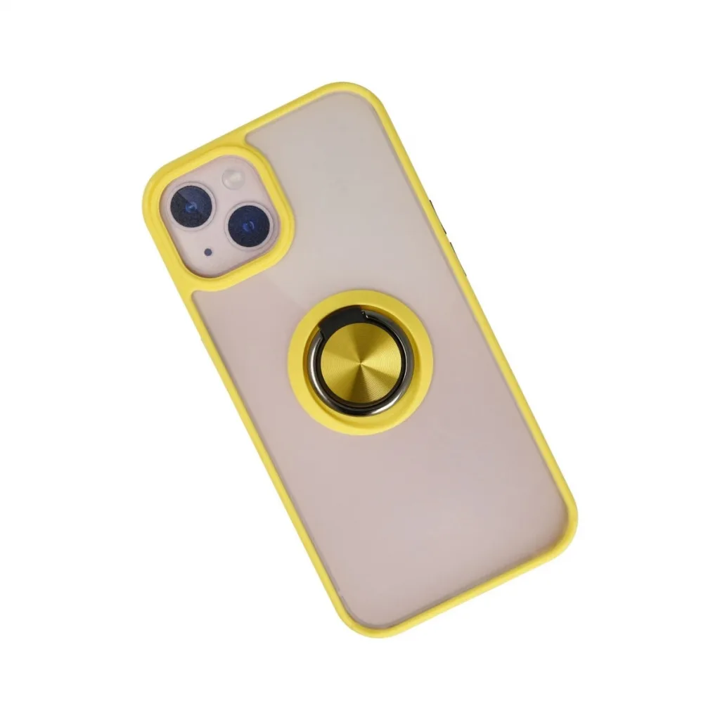 İphone 13 Kılıf Montreal Yüzüklü Silikon Kapak - Sarı