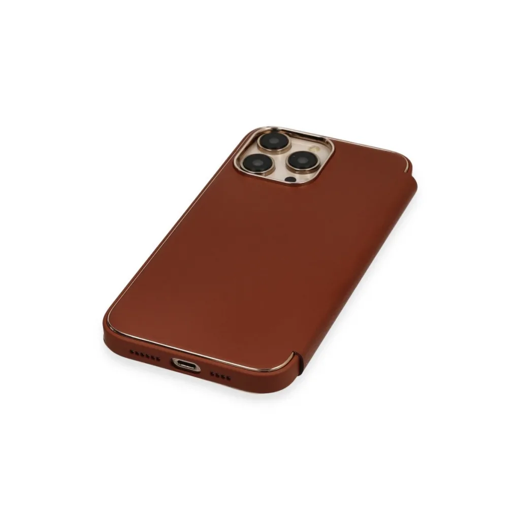 İphone 13 Pro Max Kılıf Dolpin Kapaklı - Kahverengi