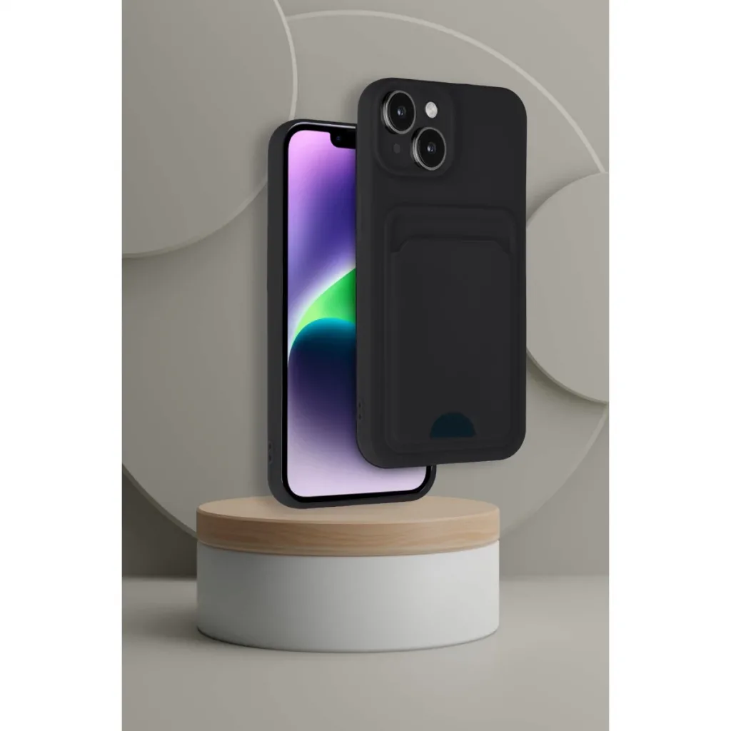 İphone 14 Kılıf Kelvin Kartvizitli Silikon - Kahverengi