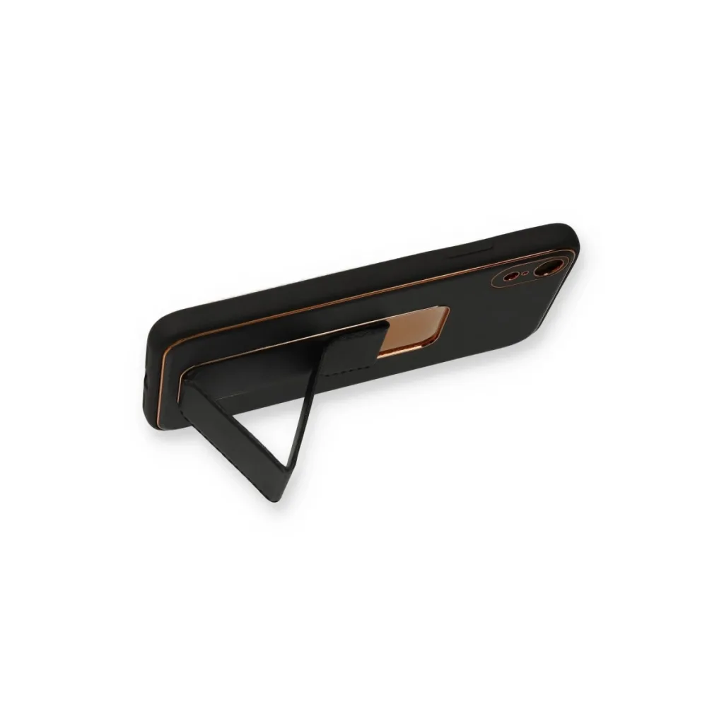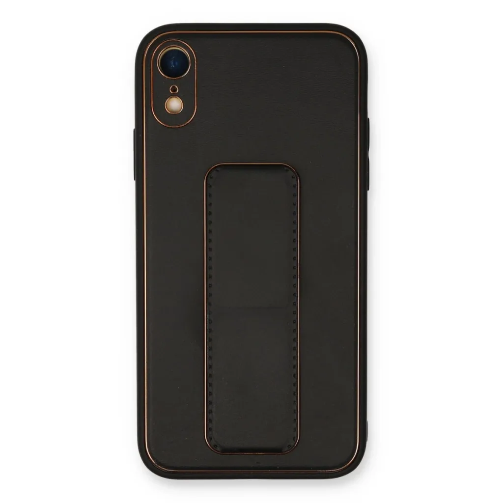 İphone Xr Kılıf Coco Deri Standlı Kapak - Siyah