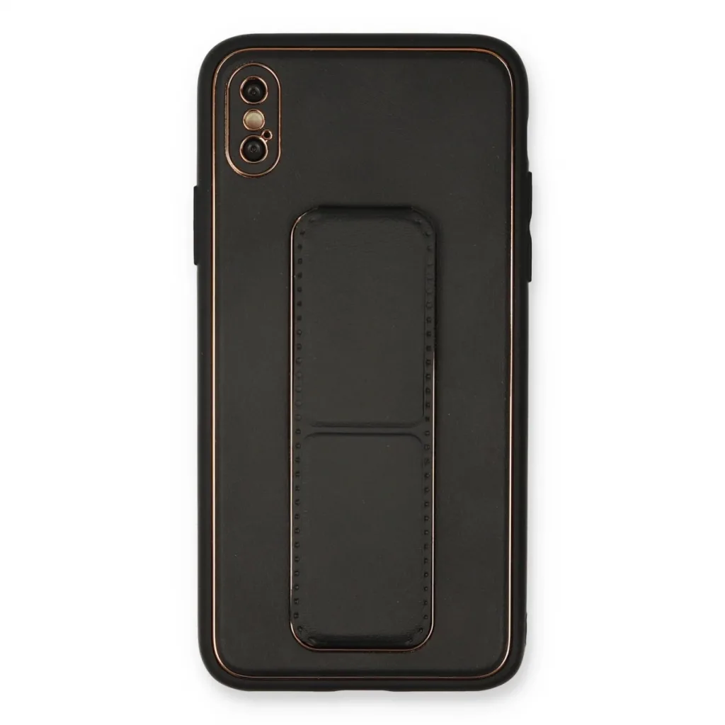İphone Xs Max Kılıf Coco Deri Standlı Kapak - Siyah