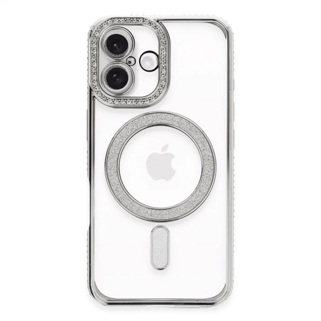 Newface İphone 16 Kılıf Joke Simli Magneticsafe Kılıf - Gümüş