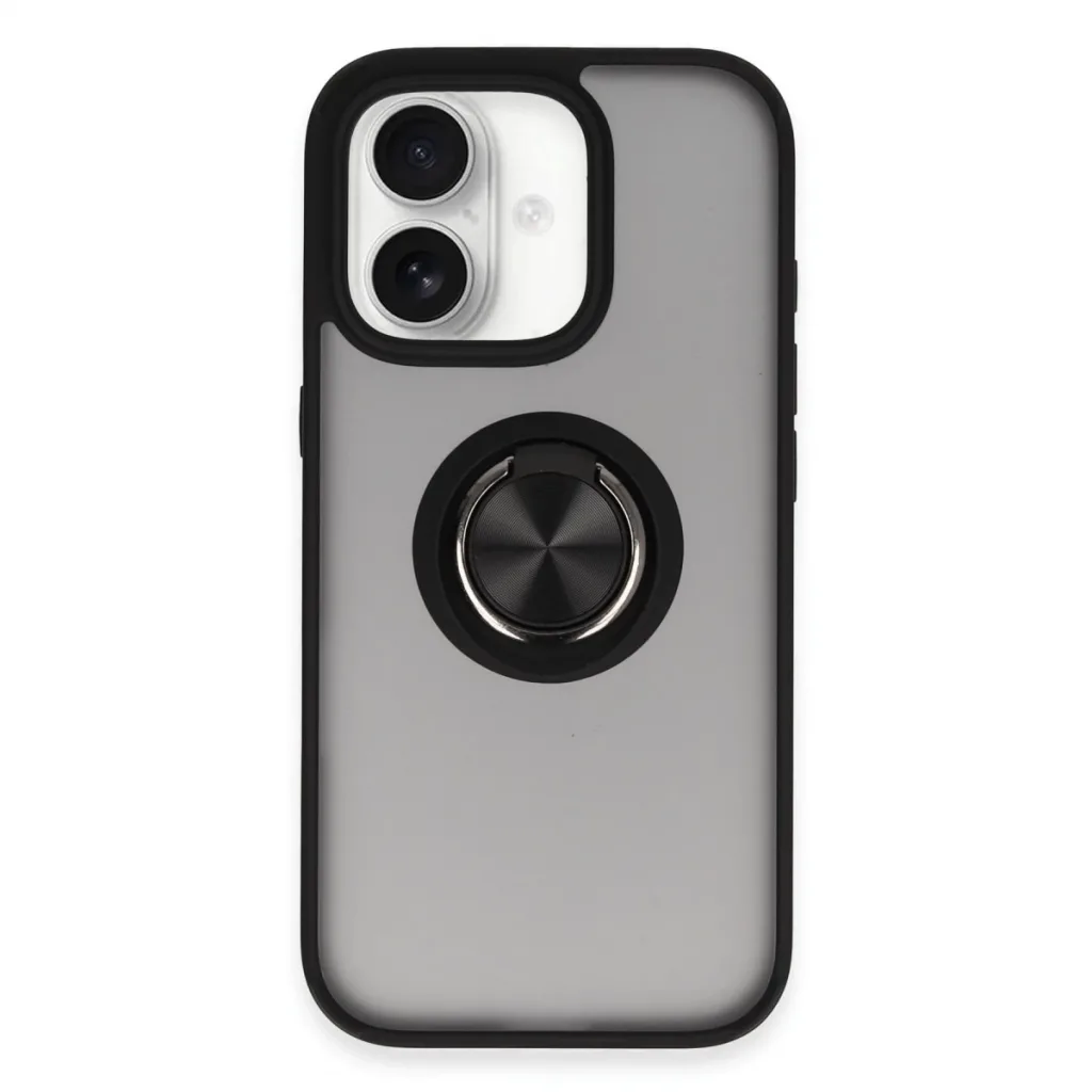 Newface İphone 16 Kılıf Montreal Yüzüklü Silikon Kapak - Siyah