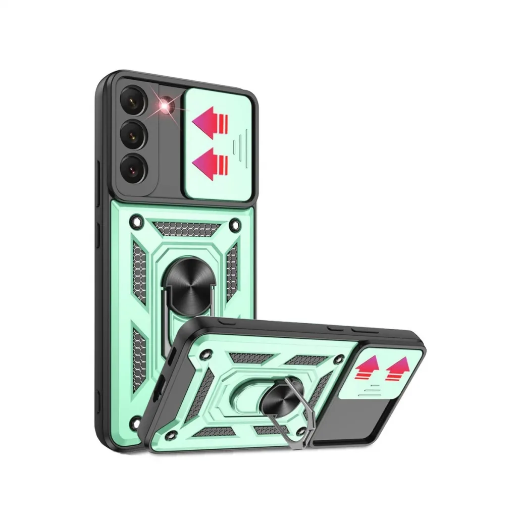 Newface Samsung Galaxy S22 Kılıf Pars Lens Yüzüklü Silikon - Yeşil