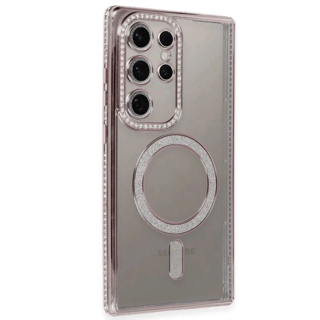 Newface Samsung Galaxy S24 Ultra Kılıf Joke Simli Magneticsafe Kılıf - Pembe
