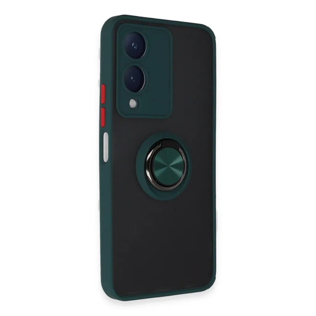 Newface Vivo Y17s Kılıf Montreal Yüzüklü Silikon Kapak - Yeşil
