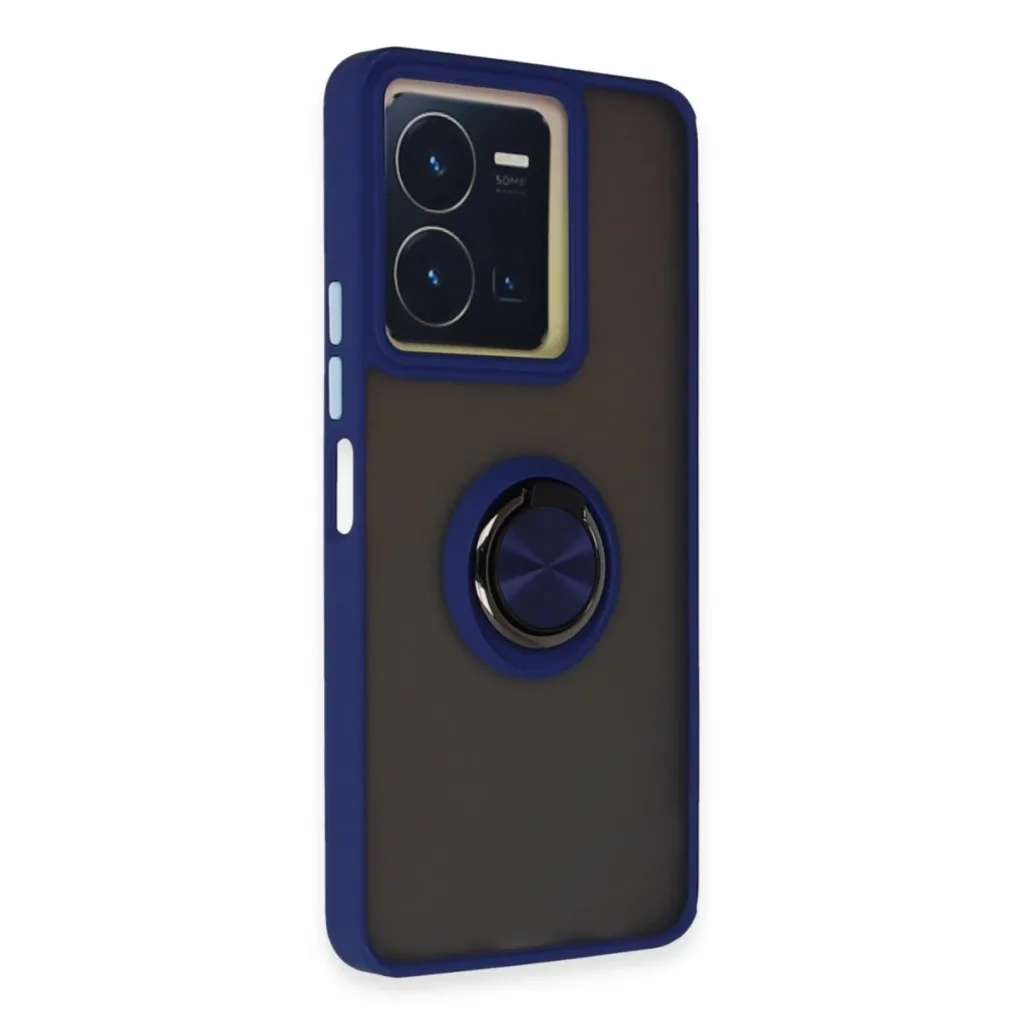 Newface Vivo Y36 Kılıf Montreal Yüzüklü Silikon Kapak - Lacivert