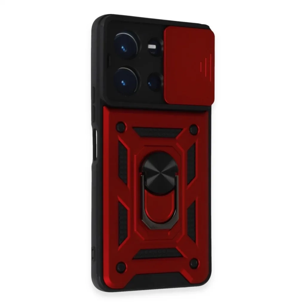 Newface Vivo Y36 Kılıf Pars Lens Yüzüklü Silikon - Kırmızı