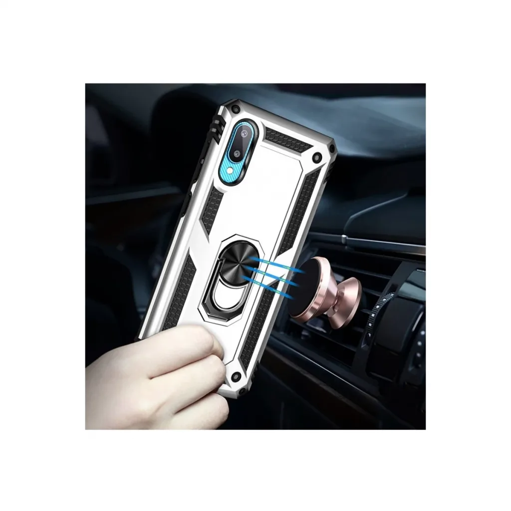 Samsung Galaxy A02 Kılıf Sofya Yüzüklü Silikon Kapak - Gümüş