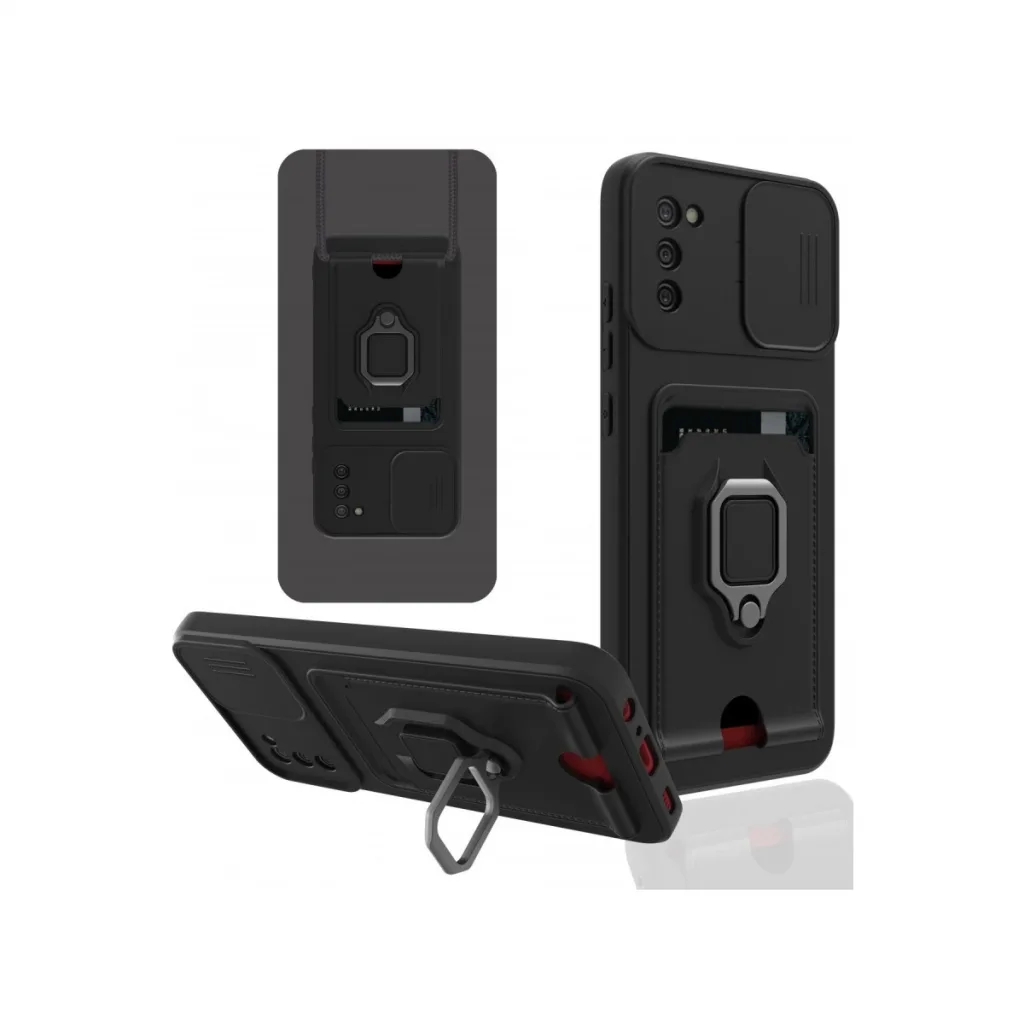 Samsung Galaxy A02s Kılıf Zuma Kartvizitli Yüzüklü Silikon - Siyah