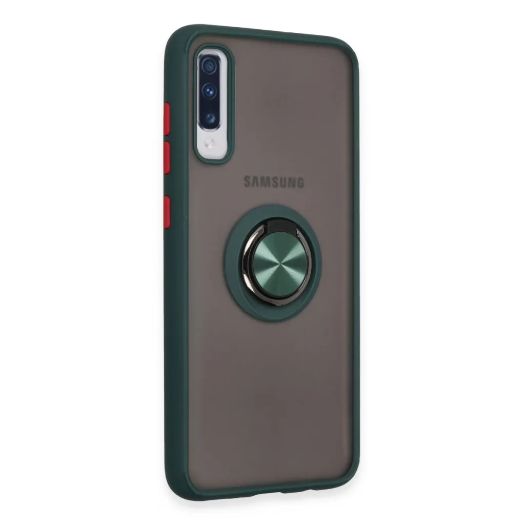Samsung Galaxy A70 Kılıf Montreal Yüzüklü Silikon Kapak - Yeşil