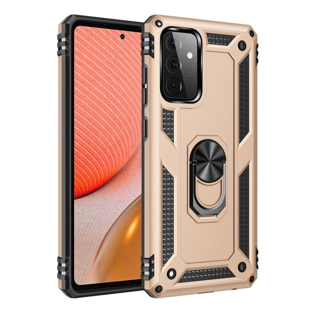 Samsung Galaxy A72 Kılıf Sofya Yüzüklü Silikon Kapak - Gold