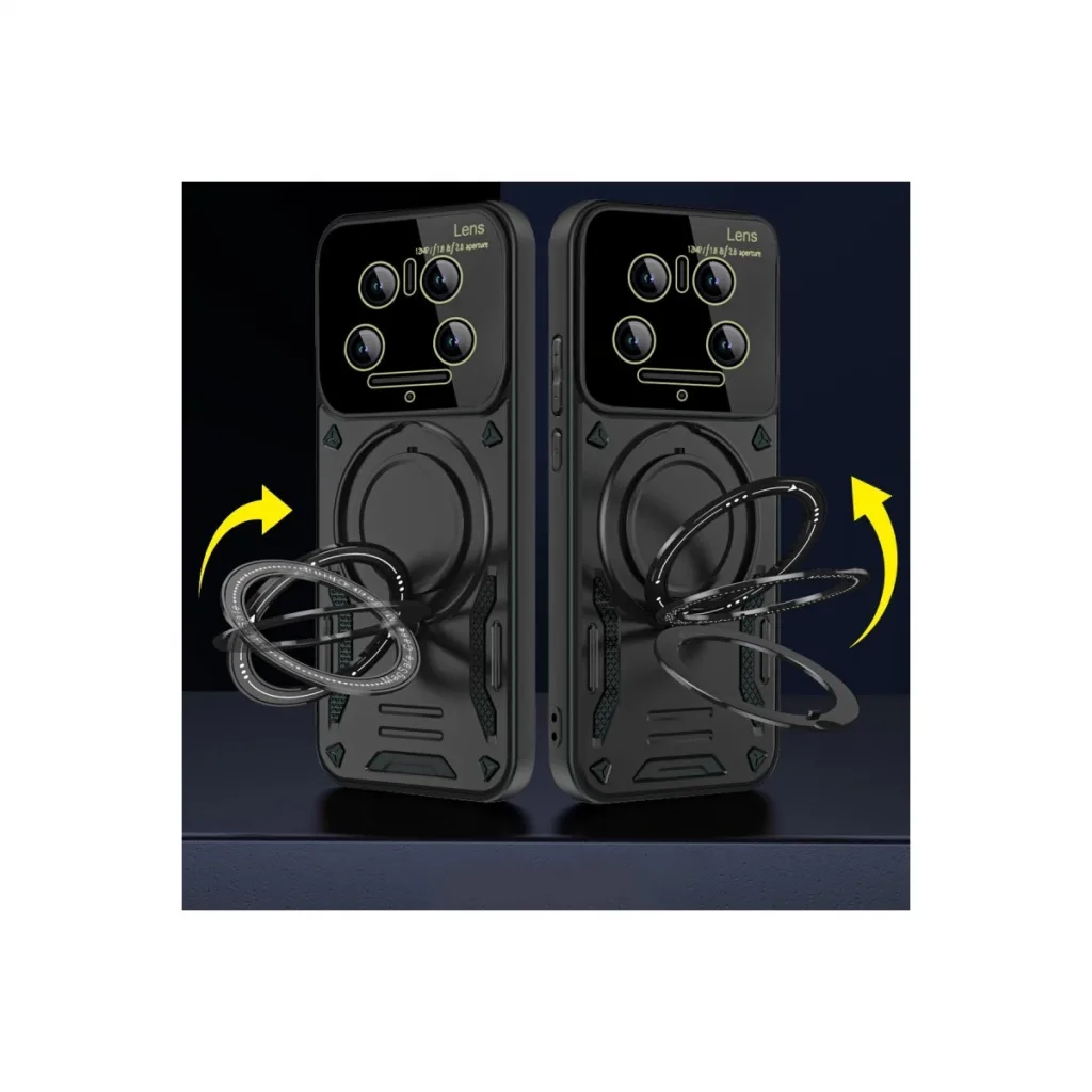 Xiaomi Mi 14 Ultra Kılıf Joy Lens Standlı Kapak - Koyu Yeşil